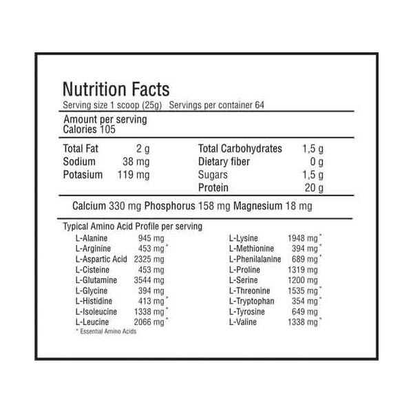 - contine cel mai inalt nivel de BCAA existent in natura (o concentratie mai mare cu 25% decat la orice alt tip de proteina)